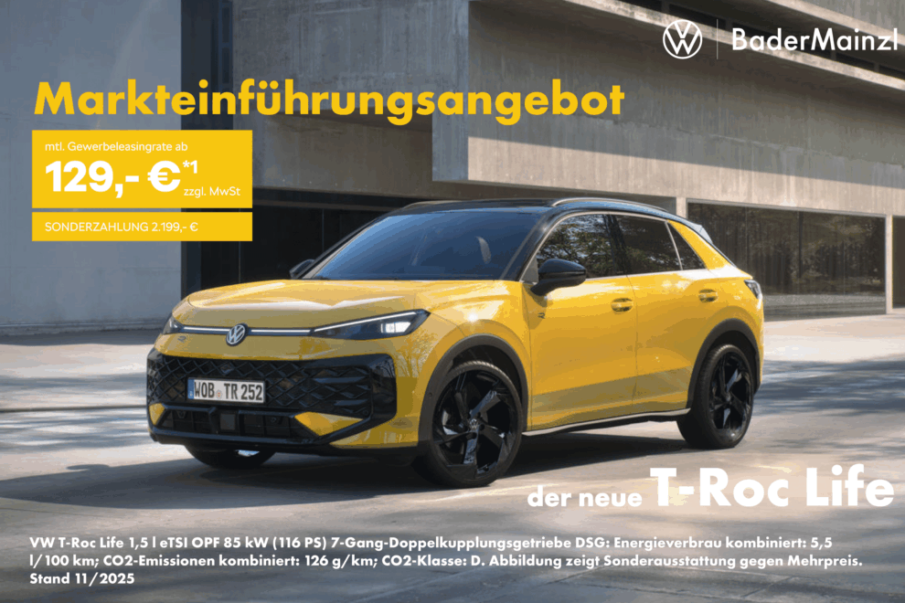 Markteinführungsangebot: der neue VW T-Roc im Gewerbeleasing zum absoluten Spitzenpreis