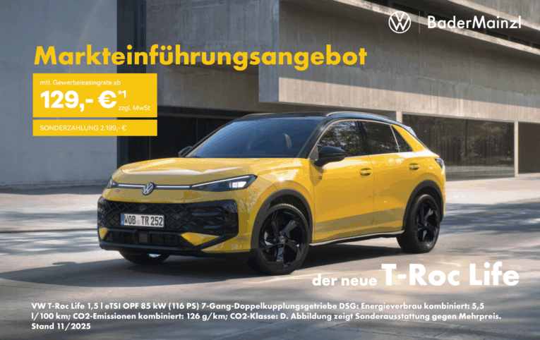 Markteinführungsangebot: der neue VW T-Roc im Gewerbeleasing zum absoluten Spitzenpreis